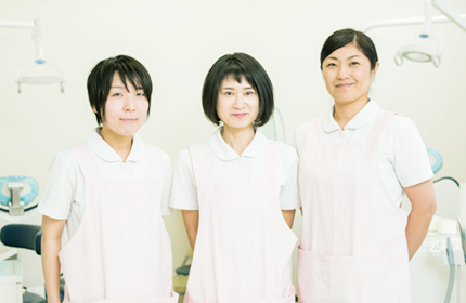 - 歯科衛生士・受付・助手の各スタッフが、患者様が安心して治療を受けることができるよう常に心掛けております。